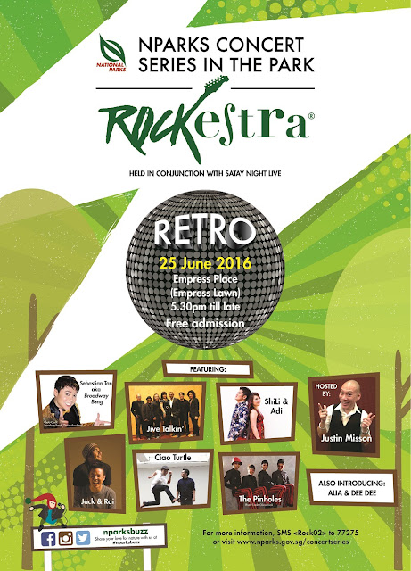 Join in for a night of good food and good music from the 50s to 90s at the second instalment of NParks Concert Series in the Park: Rockestra® on 25 June 2016 at Empress Place (Empress Lawn)!