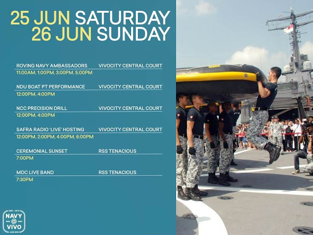 Navy@Vivo is back! The Navy's Formidable-class frigate, RSS Tenacious, will be calling at VivoCity Promenade from 23 to 26 June 2016. From Boat PT performances by naval divers, precision drills by NCC, to the Ceremonial Sunset – one of the oldest naval tradition practised by navies worldwide, here are all the activities that you can look forward to during Navy@Vivo: