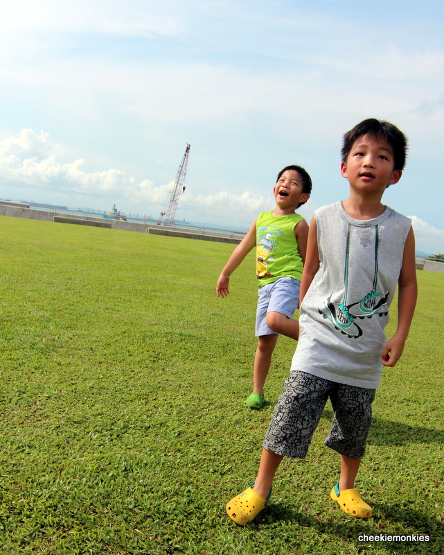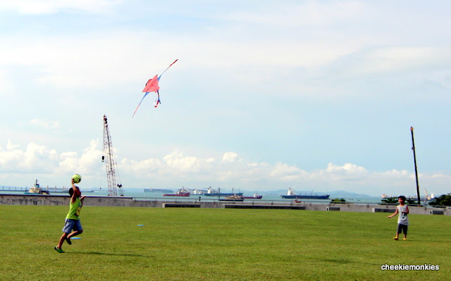 Luckily for us, the weather was superb with a hint of light breeze against our faces. Of course, the boys couldn't wait to get their kites soaring into the sky but initially, we had a tough time trying to give the kites a decent lift-off... no thanks to the inconsistent stream of wind.