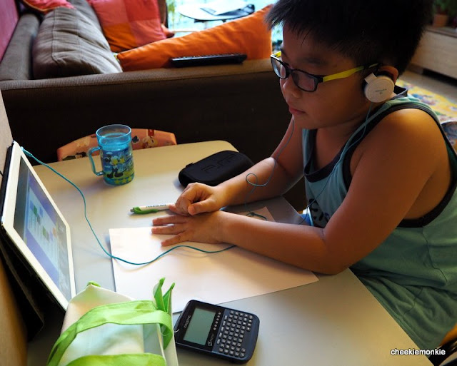 As Ash and Ayd are currently P5 and P4 students respectively, a special concession was made to allow them to attend the Very Small Group lesson - which is actually for P1-P3 kids - together. And from the onset, I could see they were clearly enjoying the lesson which was made even more fun from the fact that they were able to see each other via the tiny windows on their respective screens!